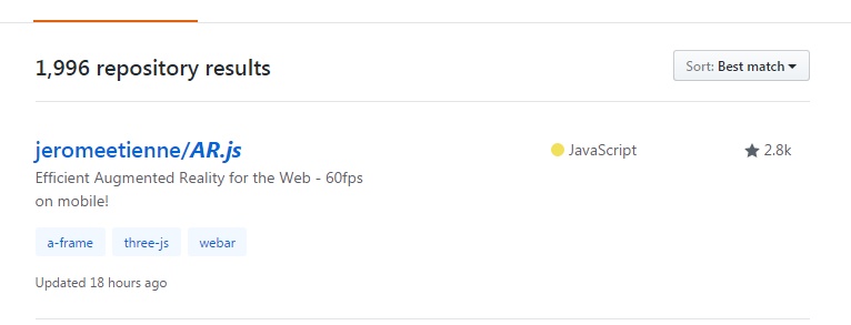 1.首先需要先到github上搜索ar.js,如下圖,有2.8K star的就是了。