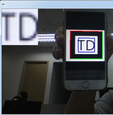 會彈出相機的配置選項,默認的確定就行,然后相機啟動以后,把我們剛才生成的圖片,對準相機然后相機識別以后會出現紅綠色邊框線,并且出現左上角識別的文字,這時請注意文字的方向是否正確。