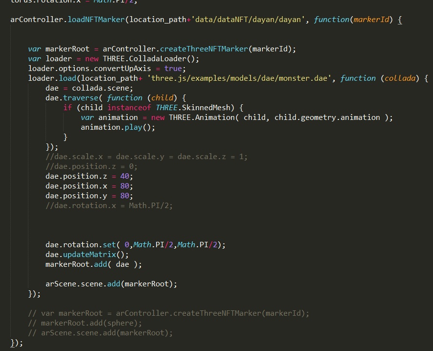 var markerRoot = arController.createThreeNFTMarker(markerId);