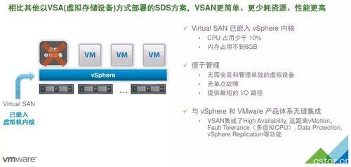 相比本次磁盤,基于 超融合虛擬化 - VSAN存儲自動化 方式最大的優(yōu)點在于其極短的分配與回收時間,并基于磁盤的備份和恢復(fù)要比本地磁盤方便得多。