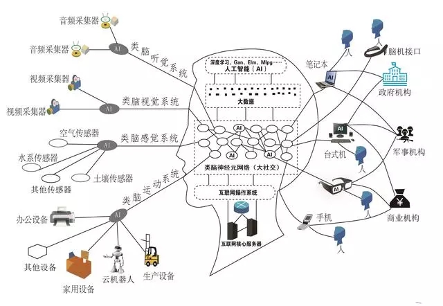從1969年互聯網誕生以來,人類從不同的方向在互聯網領域進行創新,并沒有統一的規劃將互聯網建造成什么結構,當時間的車輪到達2017年,隨著人工智能,物聯網,大數據,云計算,機器人,虛擬現實,工業互聯網等科學技術的蓬勃發展,當人類抬起頭來觀看自己的創造的巨系統,互聯網大腦的模型和架構已經越來越清晰。