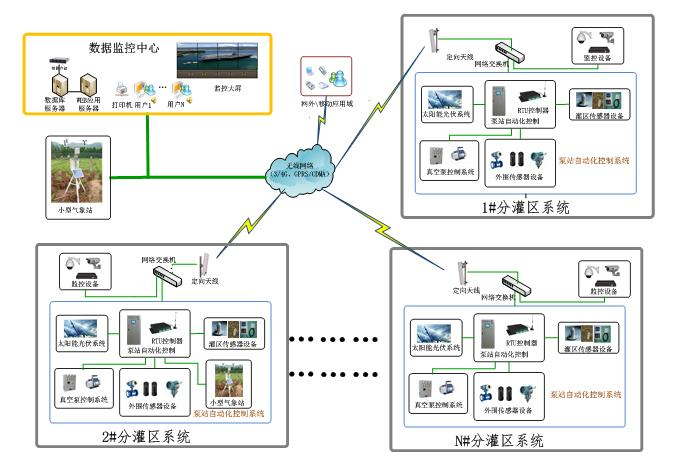 通過小型氣象站以及土壤傳感器的監(jiān)測,達(dá)到對氣候信息、農(nóng)田土壤墑情信息和農(nóng)作物長勢信息的實時監(jiān)測。采用無線或有線技術(shù),實現(xiàn)閥門的遠(yuǎn)程啟閉從而達(dá)到定時輪灌的效果。根據(jù)采集到的信息,結(jié)合當(dāng)?shù)剞r(nóng)作物的需水情況,制定灌溉計劃,進(jìn)行自動開啟水泵、閥門,實現(xiàn)無人職守自動灌溉,實現(xiàn)分片控制,預(yù)防人為誤操作。