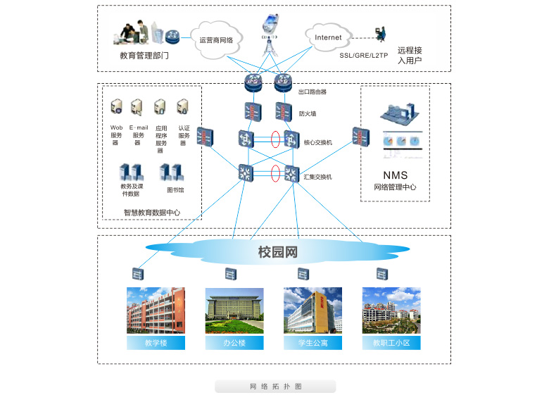 智慧教育是以數(shù)字化信息和網(wǎng)絡(luò)為基礎(chǔ),在計(jì)算機(jī)和網(wǎng)絡(luò)技術(shù)上建立起來(lái)的對(duì)教學(xué)、科研、管理、技術(shù)服務(wù)、生活服務(wù)等校園信息的收集、處理、整合、存儲(chǔ)、傳輸和應(yīng)用,使數(shù)字資源得到充分優(yōu)化利用的一種虛擬教育環(huán)境。通過(guò)實(shí)現(xiàn)從環(huán)境(包括設(shè)備,教室等)、資源(如圖書(shū)、講義、課件等)到應(yīng)用(包括教、學(xué)、管理、服務(wù)、辦公等)的全部數(shù)字化,在傳統(tǒng)校園基礎(chǔ)上構(gòu)建一個(gè)數(shù)字空間,以拓展現(xiàn)實(shí)教育的時(shí)間和空間維度,提升傳統(tǒng)教育的管理、運(yùn)行效率,擴(kuò)展傳統(tǒng)校園的業(yè)務(wù)功能,最終實(shí)現(xiàn)教育過(guò)程的全面信息化,從而達(dá)到提高管理水平、提升就業(yè)率的目的。