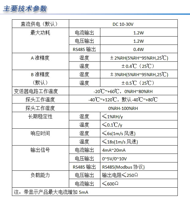 本溫濕度變送器采用外置全金屬溫濕度傳感器,防塵濾芯采用銅顆粒燒結,防水透氣且靈敏度較好,尾部采用銅質鎖緊頭美觀大方。溫濕度傳感器核心進行了本公司獨有的防水工藝處理,可防雨雪,適合測量室內、室外環境使用。輸出信號類型分為RS485\4-20mA\0-5V\0-10V等。詳見選型表。