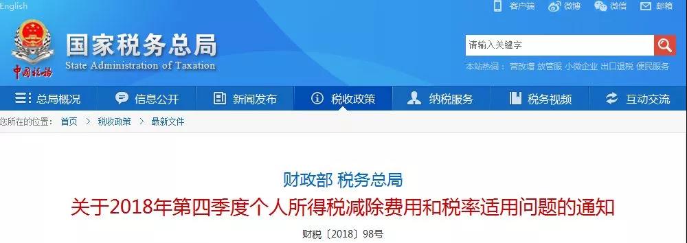 納稅人2018年10月1日(含)以后實際取得的工資、薪金所得,適用“通知”規定的5000元基本減除費用和新稅率表。