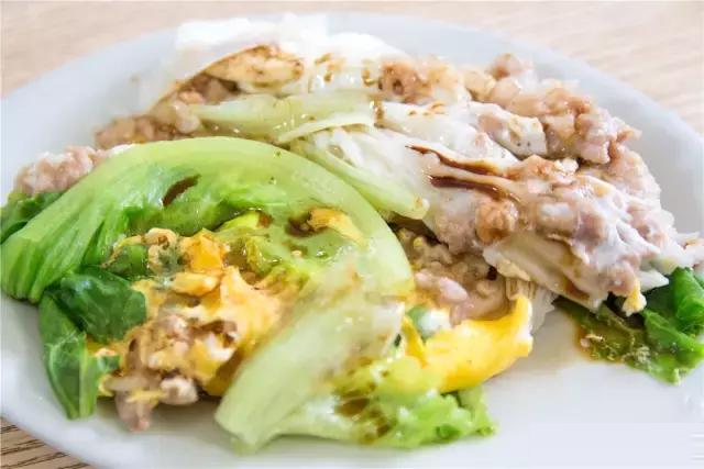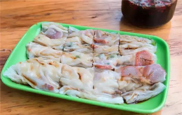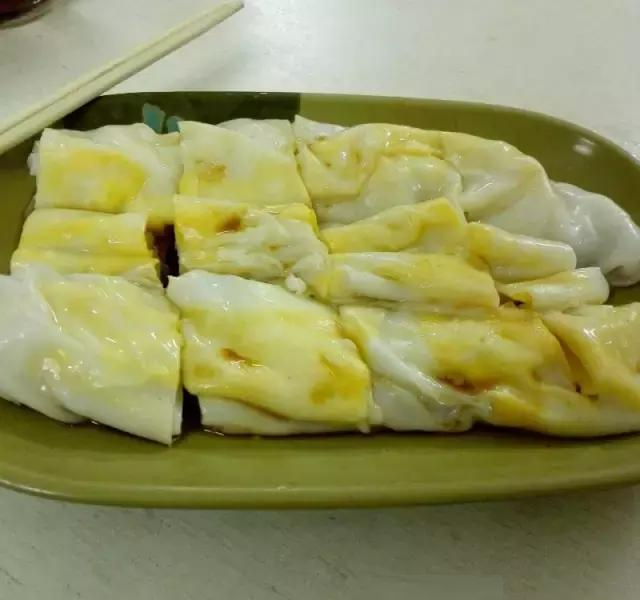 潮汕腸粉會將很多肉脯、蛋菜都放到加入到腸粉里,可能是入鄉隨俗,西門塘這家腸粉店加的料也偏向廣府這邊的“簡約”,沒有過多的用料,但特色之處就保留在醬汁上面。潮汕腸粉用的秘制鹵醬汁不同于廣府這邊的醬油,顏色偏棕黃,混有幾顆潮汕菜脯丁,超級無敵香!一口下肚大滿足!