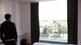 到達房間門口后,攝像頭識別出身份,房門自動開啟,客人就能進去休息了。