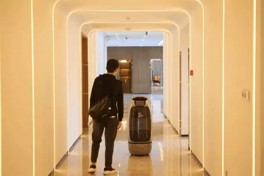 登記完畢后,電梯會啟動等候系統,這時機器人帶客人去房間就不必再費時間等電梯了。