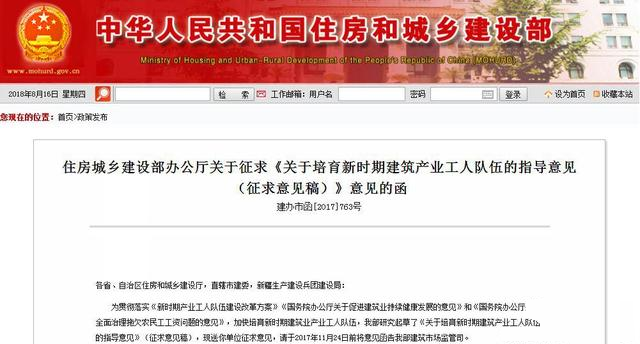 住建部發(fā)布:《關(guān)于培育新時(shí)期建筑產(chǎn)業(yè)工人隊(duì)伍的指導(dǎo)意見(征求意見稿)》
