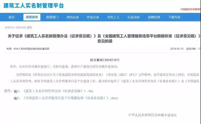 《建筑工人實(shí)名制管理辦法(征求意見稿)》