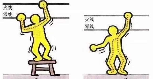 要避免這種情況,就要使腳與大地斷開連接。方法有很多種,比如踩在板凳上、穿上絕緣膠鞋等,總之,就是要在腳與大地之間用絕緣體隔開。當然,在此過程中,還要保證身體的其它部位不要和大地或墻面接觸。