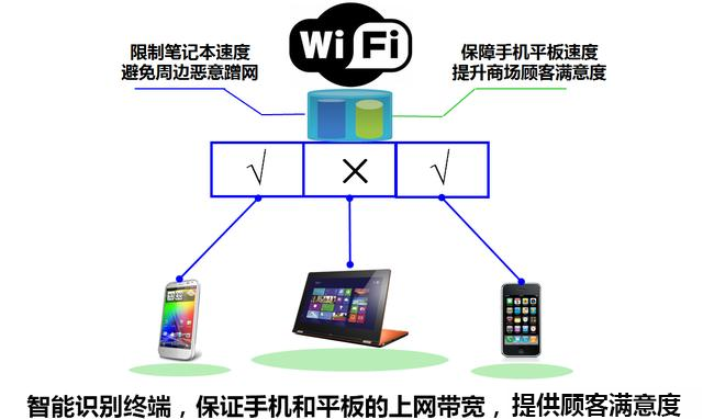 第六空間家居發(fā)展有限公司商場終端復雜多樣,無線控制器自動識別終端類型,根據(jù)終端類型設置相應的流量控制策略。對于非手機和pad的電腦終端,我們對其進行帶寬限制,防止電腦終端對于帶寬的過分搶占,從而保障顧客通過手機和pad的上網(wǎng)體驗。