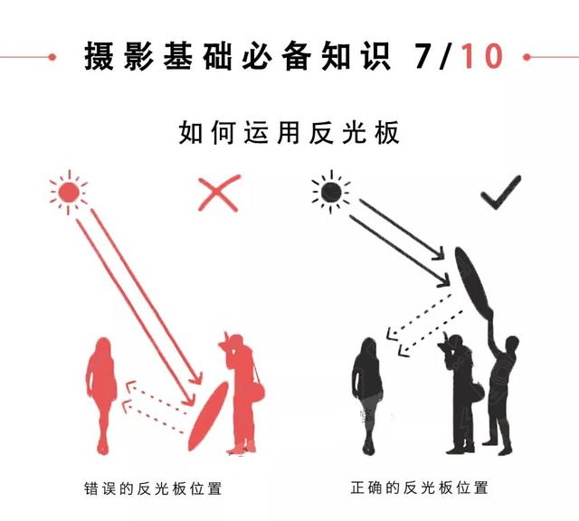 下圖為大家演示了正確的反光板的位置,不要從地面向上反射光線,而是將反光板舉高,從上面進行反射,這樣光線看起來更加自然立體。