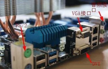 前面講過了,顯卡要與顯示器連接才行,有的主板是集成顯卡的,就直接把顯示器接口連接到主板即可,已經講過接口是VGA,DVI,HDMI。按照對應的接口連接就可以了。