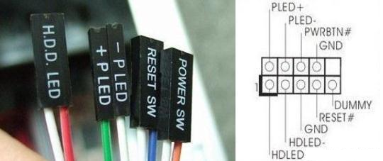 在主板上面還有很多一些其它接口,有電源插口這些可以用來主板供電,獨立顯卡供電,硬盤供電,CPU風扇供電等。還有連接機箱用的主板跳線。主要是涉及到電源機箱開機按鈕、重新啟動按鈕以及機箱電源指示等線的連接。按照圖示的進行對應連接即可。