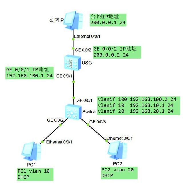 今天這篇將三者結合一下,也不要太復雜。有交換機有vlan,有防火墻有域策略,再加個NAT地址轉換。