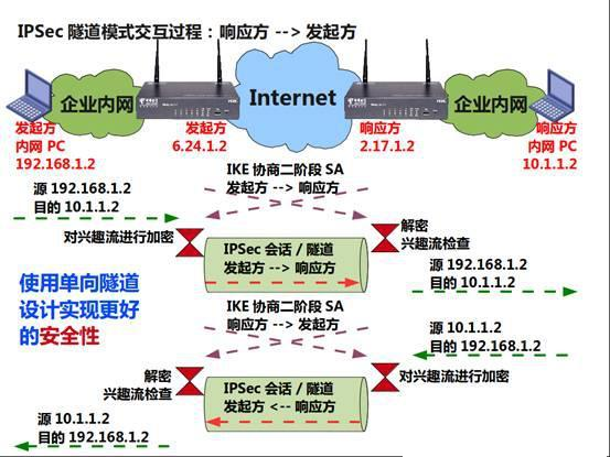 IPSec中安全性還體現在第二階段SA永遠是單向的: