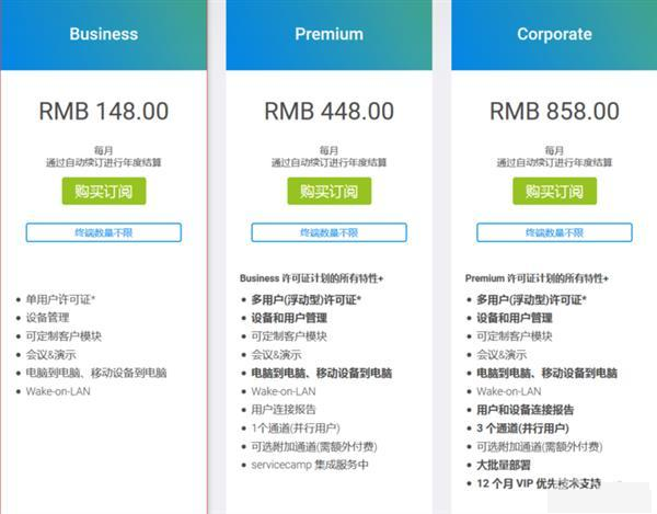 首先,如果你購買的是每月148元的普通商用版(Business版),那么它的功能和免費(fèi)授權(quán)的版本區(qū)別不大,而且許可證只允許從最多3個(gè)設(shè)備進(jìn)行連接。