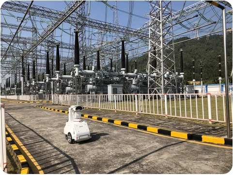智能巡檢機器人正在500千伏江門站對設備外觀、儀表讀數進行檢查,并用紅外成像儀進行紅外測溫。