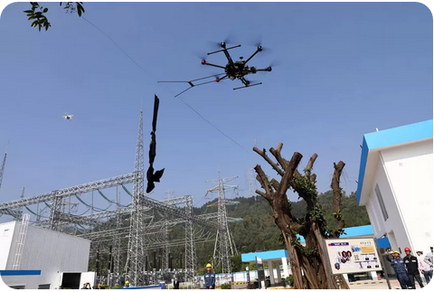 南方電網廣東江門供電局無人機團隊現場演示發熱絲無人機清障