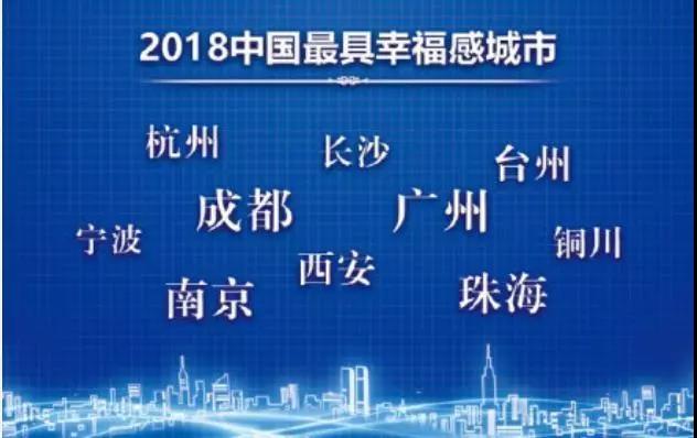 26日,“2018中國幸福城市論壇”11月26日在廣州舉行,評選出2018最具幸福感城市,前十依次為,成都、寧波、杭州、西安、南京、廣州、長沙、臺州、銅川、珠海。成都脫穎而出名單榜首。