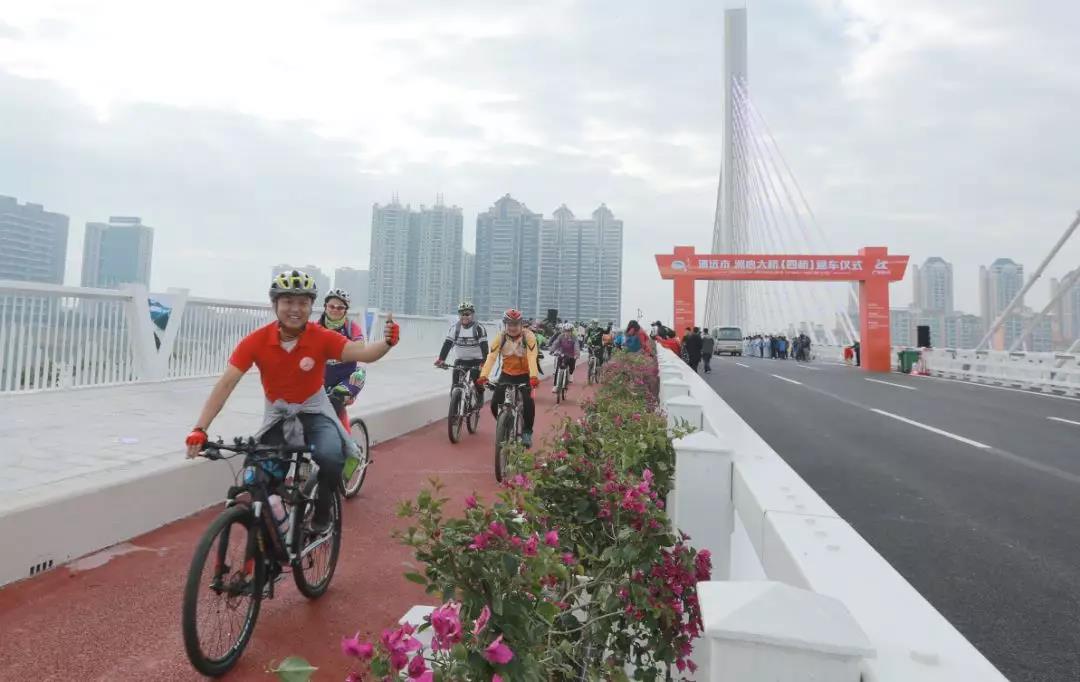 12月19日,通車儀式后,50名本地自行車愛好者通過騎行的方式率先體驗洲心大橋之美。清遠日報記者吳明 攝