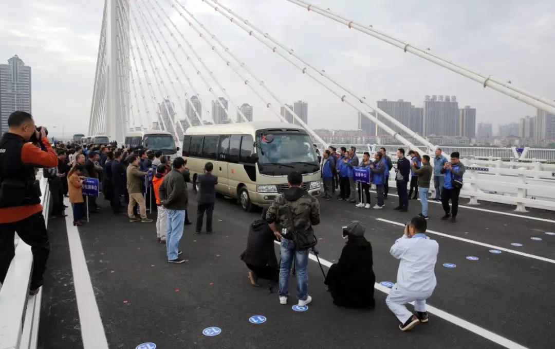 19日上午,第一批通過洲心大橋的車隊。清遠日報記者李作描 攝