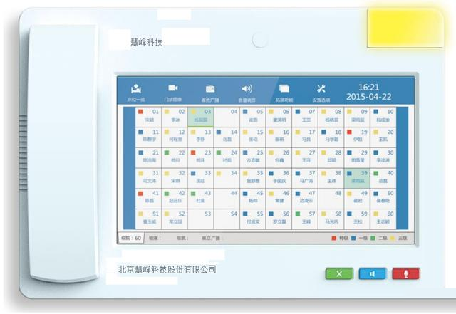 ● 可在總值班室或呼叫中心使用,實時監控各病區的呼叫處理情況,直觀顯示各病