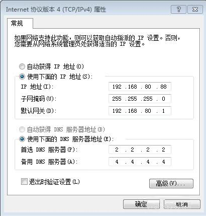 ip是192.168.80.88,子網掩碼是255.255.255.0,網關是192.168.80.1