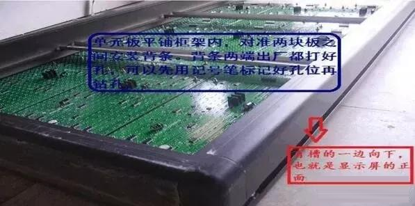 2,把外框架組裝完畢,將單元板擺放于框架內(nèi)(注意框架的正反面,有槽的一面是正面),這時(shí)候安裝背條的位置是相當(dāng)準(zhǔn)確的,避免錯(cuò)一根而改全部的麻煩,如下圖所示;