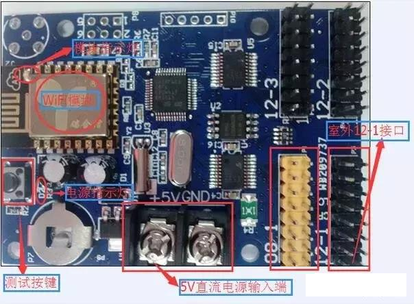 1,控制卡與單元板排線連接(特別重要),連接之前請(qǐng)仔細(xì)看明白為止,屏未固定在墻上,這是最關(guān)鍵一步,可以先通過測(cè)試按鈕檢查屏安裝是否正確,控制卡實(shí)物介紹,以WIFI卡為例(USB卡,云卡,網(wǎng)絡(luò)卡,GPRS卡),如下圖;
