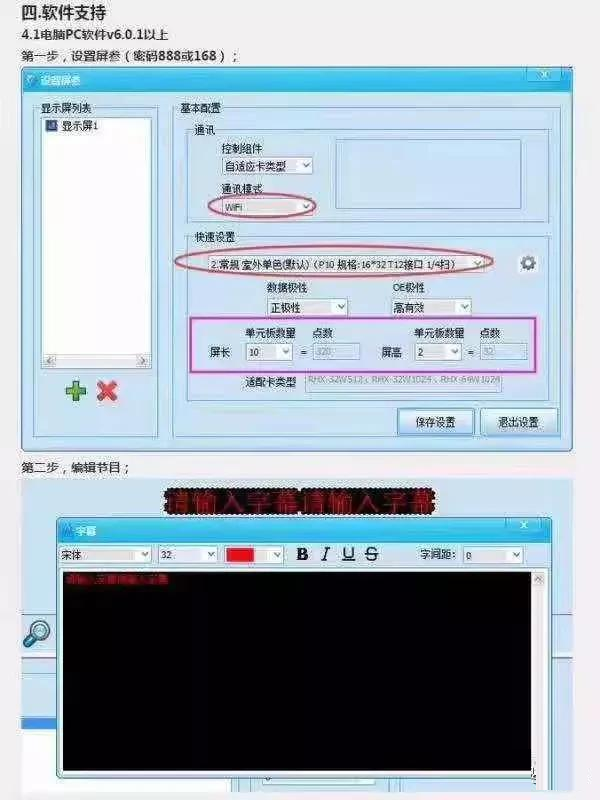 若有以上四種測(cè)試狀態(tài),證明控制卡和顯示屏連接正常,檢查節(jié)目設(shè)置是否正確,請(qǐng)編輯可以正確的屏參節(jié)目,發(fā)送即可;