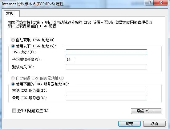 子網前綴長度設置為64,而默認網關和DNS服務器的話分別根據你路由器的網關和DNS的IP來設置。不同的服務商和不同區域,DNS服務器地址一般是不同的。