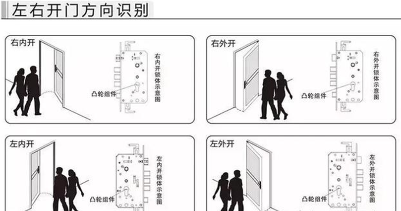 少部分產品是幾個方向都適合的,但大多數產品還是要確定其開門方向的,我們以大多數的右內開為例子。實際安裝的時候,以實際開向為主。