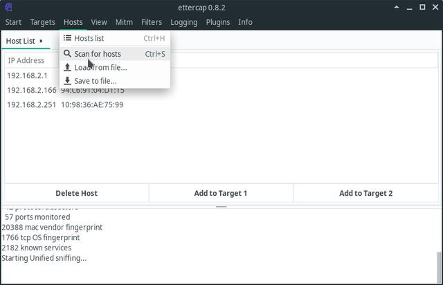 在這里我發現主機列表肯定是不對的,所以要進行一下掃描,選擇Hosts→Scan for hosts: