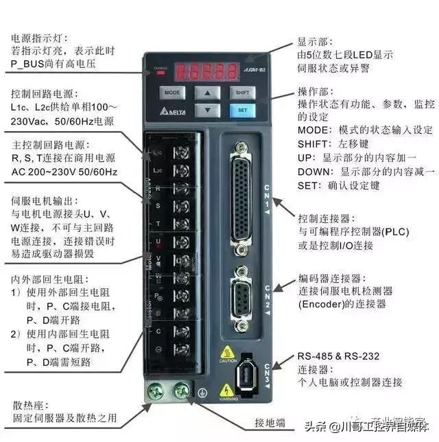 伺服驅動器主要有控制回路電源、主控制回路電源、伺服輸出電源、控制器輸入CN1、編碼器接口CN2、連接起CN3。控制回路電源是單相AC電源,輸入電源可單相、三相,但是必須是220v,就是說三相輸入時,咱們的三相電源必須經過變壓器變壓才能接,對于功率較小的驅動器,可單相直接驅動,單相接法必須接R、S端子。伺服電機輸出U、V、W切記千萬不能與主電路電源連接,有可能燒毀驅動器。CN1端口主要用于上位機控制器的連接,提供輸入、輸出、編碼器ABZ三相輸出、各種監控信號的模擬量輸出。