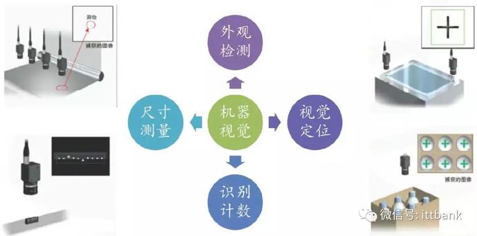 目前,機(jī)器視覺的基礎(chǔ)功能主要可以分為四大類:模式識(shí)別/計(jì)數(shù)、視覺定位、尺寸測量和外觀檢測,當(dāng)前的應(yīng)用也基本是基于這四大類功能來展開。