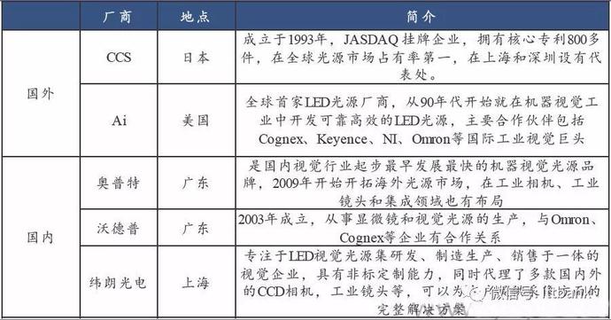 光源是國產(chǎn)化最充分環(huán)節(jié)。光源的好壞在于對(duì)比度、亮度和對(duì)位置變化的敏感程度,機(jī)器視覺行業(yè)主要采用LED 光源產(chǎn)品。目前沒有通用的機(jī)器視覺照明設(shè)備,針對(duì)每個(gè)特定的應(yīng)用實(shí)例有個(gè)性化的方案,以達(dá)到最佳效果 。目前光源行業(yè)國產(chǎn)化程度高,競爭比較激烈。