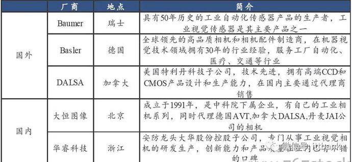 國內(nèi)外工業(yè)相機(jī)參與企業(yè)