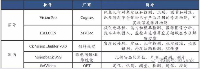 圖像處理軟件基本被國外企業(yè)壟斷,國內(nèi)企業(yè)在二次開發(fā)中有所布局。工業(yè)視覺軟件則對(duì)數(shù)字信號(hào)進(jìn)行各種運(yùn)算來抽取目標(biāo)的特征,進(jìn)而根據(jù)判別的結(jié)果來控制現(xiàn)場的設(shè)備動(dòng)作,自動(dòng)完成對(duì)圖像采集、顯示、存儲(chǔ)和處理。當(dāng)前比較流行的開發(fā)模式是“軟件平臺(tái)+視覺開發(fā)包”,開發(fā)包是基于軟件平臺(tái)對(duì)常用各種圖像處理算法進(jìn)行了封裝,軟件工程師可以直接調(diào)用封裝好的算法實(shí)現(xiàn)各種復(fù)雜的圖像處理功能,降低二次開發(fā)難度和工作量。