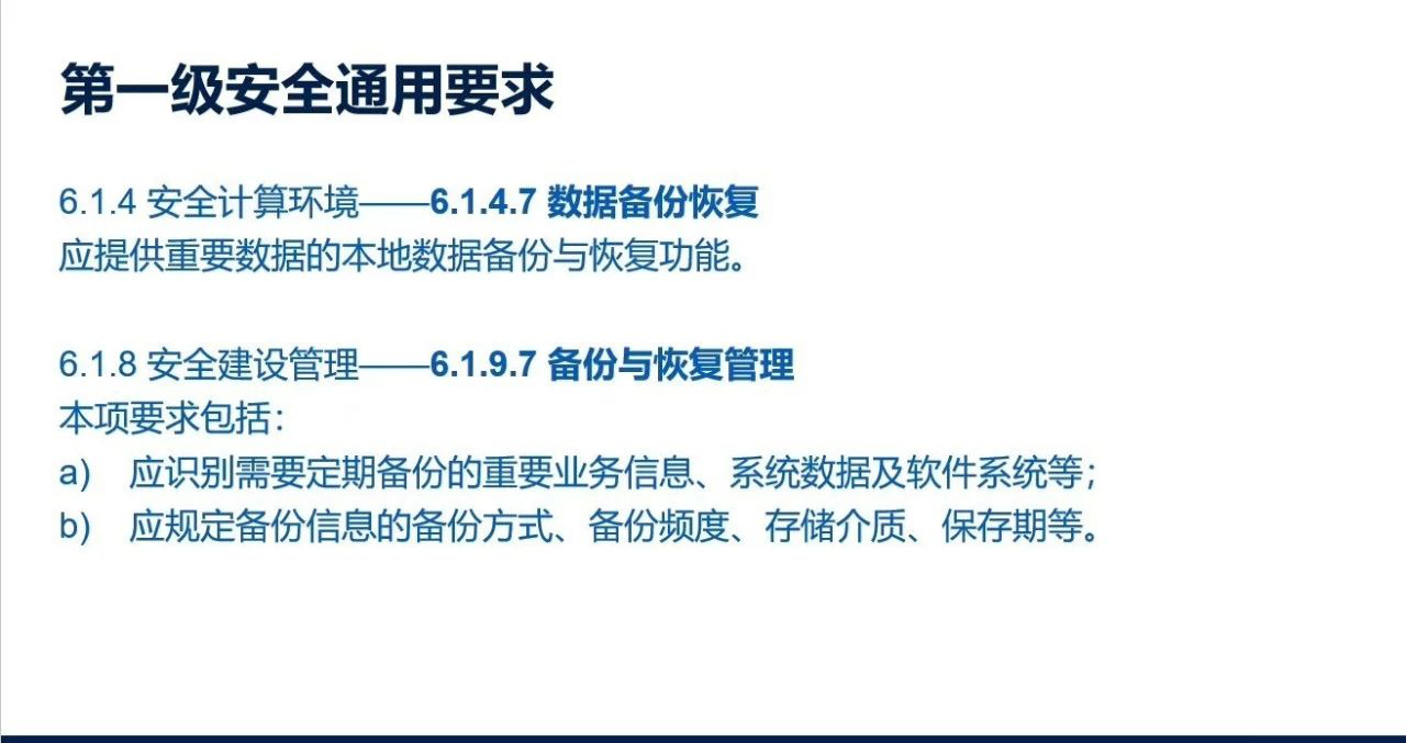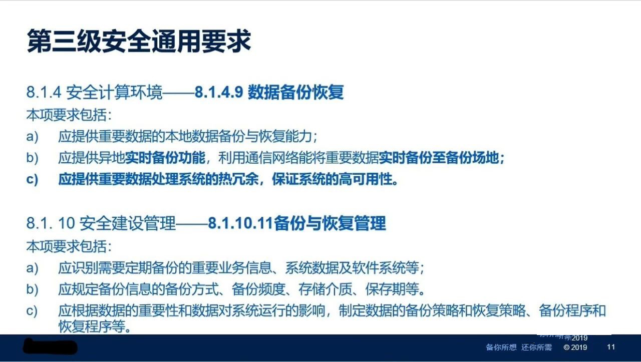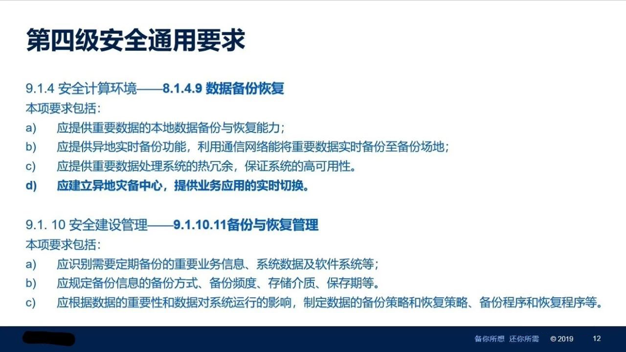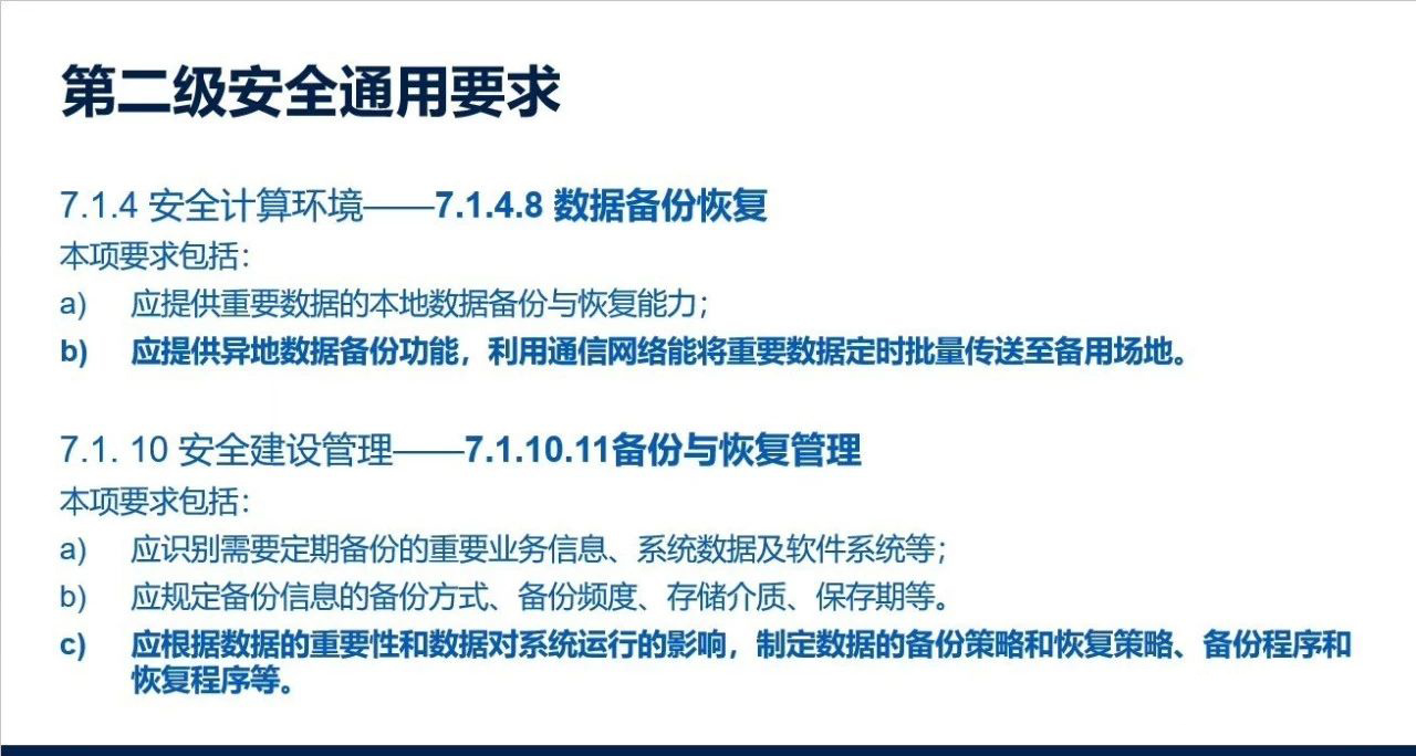 在新的標準中,對于數據備份和災難恢復有了新的變化,我們先來看一看新標準中的規定: