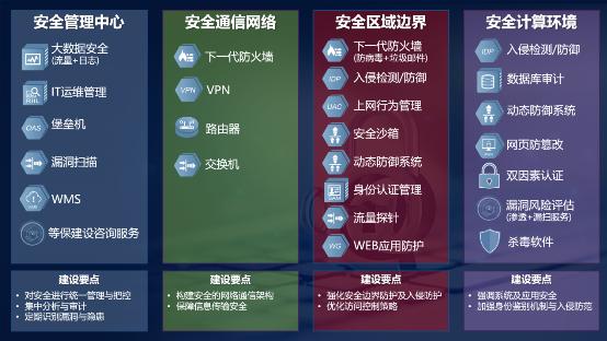 等保2.0充分體現了“一個中心三重防御”的思想。一個中心指“安全管理中心”,三重防御指“安全計算環境、安全區域邊界、安全網絡通信”,同時等保2.0強化可信計算安全技術要求的使用。