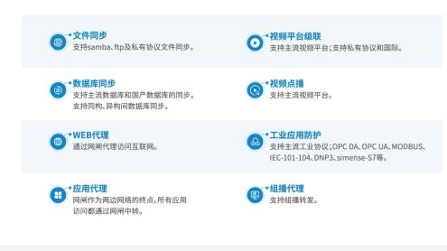 網(wǎng)絡(luò)信息安全等級(jí)保護(hù)網(wǎng)閘采用“2+1”的系統(tǒng)架構(gòu),由內(nèi)、外網(wǎng)主機(jī)單元與數(shù)據(jù)交換單元(隔離交換芯片)三部分組成,基于多核多線程專用專用安全操作系統(tǒng),采用類似船閘擺渡的工作原理在內(nèi)、外主機(jī)之間擺渡應(yīng)用數(shù)據(jù),安全隔離網(wǎng)絡(luò)的同時(shí)做實(shí)時(shí)的數(shù)據(jù)交換。深信服網(wǎng)閘產(chǎn)品功能不斷創(chuàng)新,由最初的簡單文件交換功能,逐步增加了復(fù)雜的數(shù)據(jù)庫同步、視頻平臺(tái)級(jí)聯(lián)、組播代理等功能,以滿足不同業(yè)務(wù)系統(tǒng)數(shù)據(jù)共享、視頻網(wǎng)絡(luò)互聯(lián)、廣電播出網(wǎng)數(shù)據(jù)交換等復(fù)雜網(wǎng)絡(luò)隔離交換的需求。