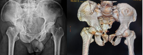 患者林某,因高能量損傷導(dǎo)致髖臼骨折,骨折塊粉碎并移位,量大且復(fù)位固定操作異常艱難。傳統(tǒng)的內(nèi)固定手術(shù)時(shí)間長、風(fēng)險(xiǎn)高,對于患者來說,不僅康復(fù)周期長,還可能面臨較高的并發(fā)癥風(fēng)險(xiǎn)。