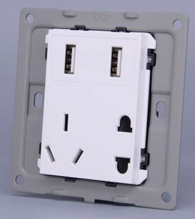 86型墻壁開關(guān)插座 2.1A雙USB插座五孔
